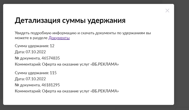 Виды прочих удержаний на Wildberries
